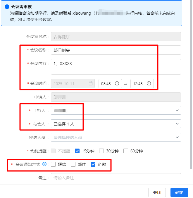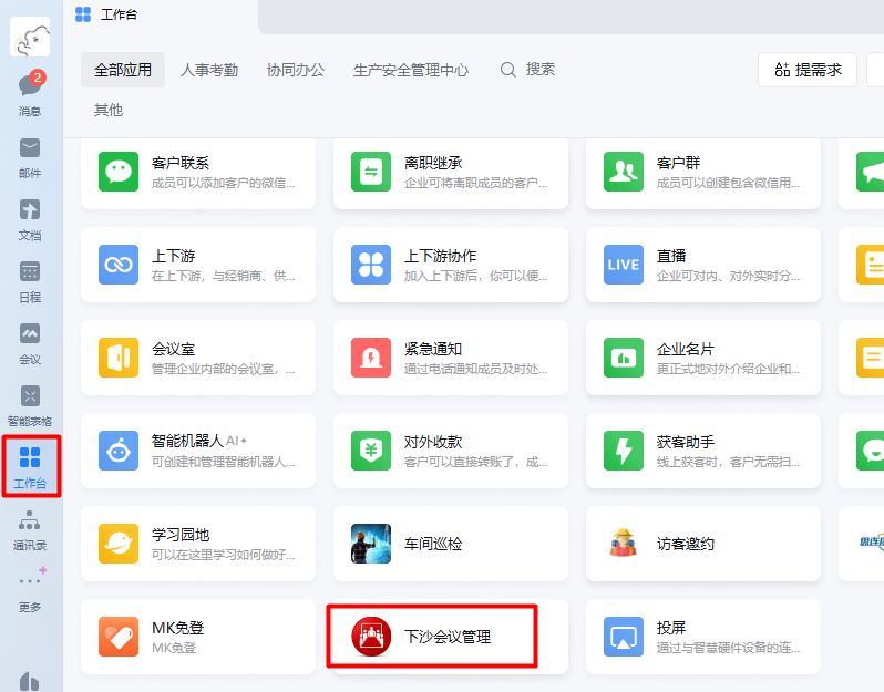 Posted in未分类 下沙会议室申请指南 Posted by By admin No Comments 1、打开企业微信,选择工作台——下沙会议管理。 2、选择需要申请的会议室,点击【未被占用】的时间。 3、填写会议名称、内容、时间、主持人、与会人以及会议通知方式。 4、点击【确认】后,预约会议成功。 小贴士:会议室位置如下 admin View All Posts Post navigation Previous Post 二级集团vpn登录指引-windows系统Next Post打印机操作指南