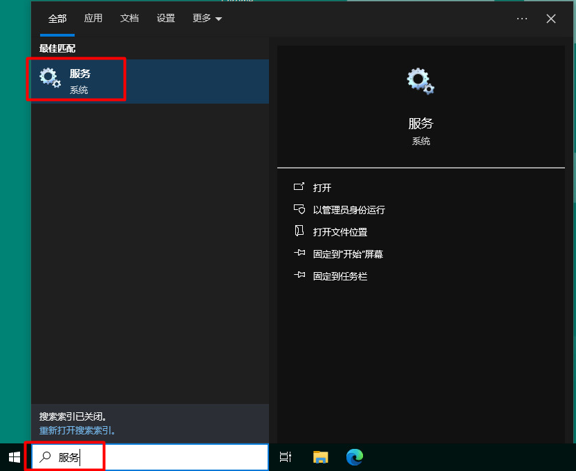 1、在桌面上 搜索 “服务”。
