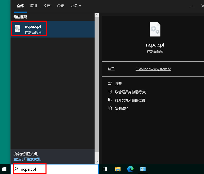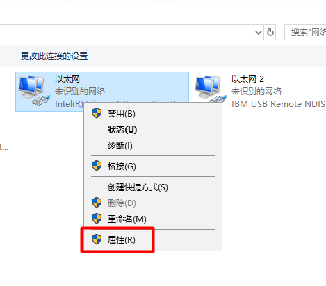 2、在桌面上 搜索 “ncpa.cpl”,打开“以太网”窗口,选择“属性”。